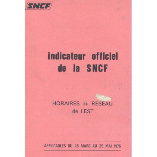 Indicateur officiel de la SNCF 1976 Horaires du Resau du I EST