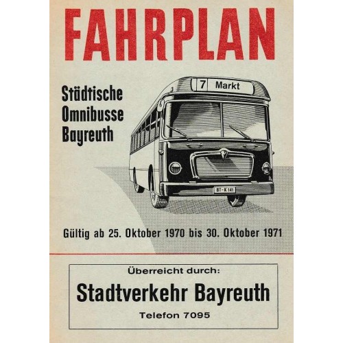 Fahrplan Städtische Omnibuse Bayreuth Gültig ab 25.Oktober 1970 bis 30 Oktober 1971